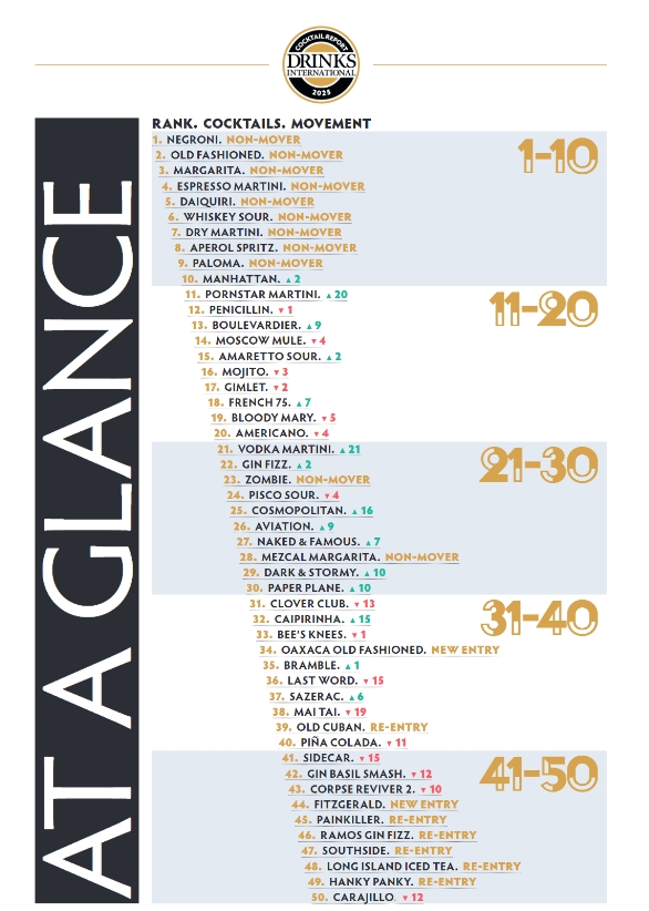 2025 Drinks International Kokteyl Raporu her yıl 30 ülkeden seçilen 100 barda en çok sipariş edilen klasik kokteylleri sıralıyor.