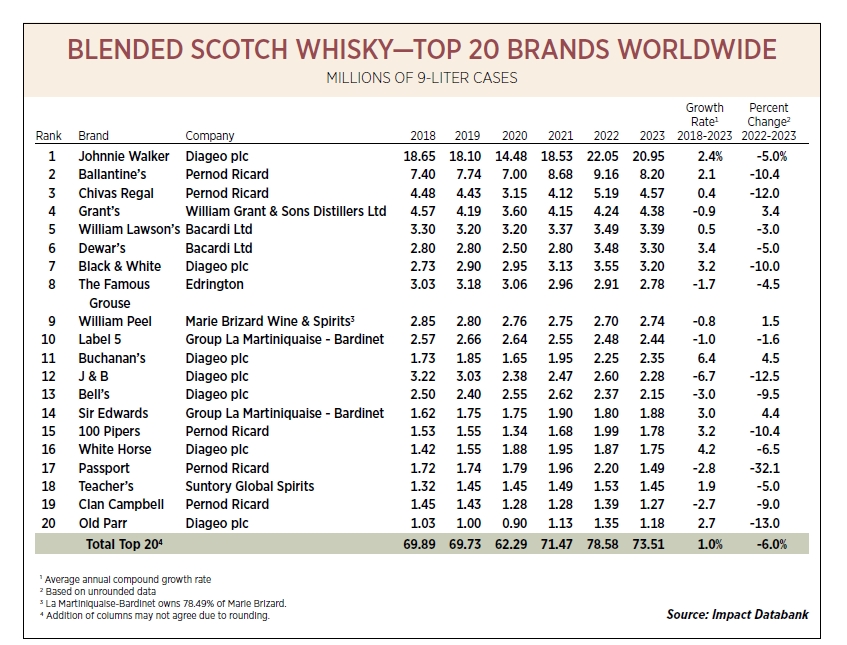 1800’lü yılların sonundan bu yana tüm dünyada satışta olan Johnnie Walker’ın tartışmasız liderliği devam ediyor. Johnnie Walker’dan sonra 2,3 ve 4. sırada bulunan Ballantine’s, Chivas ve Grants’in satışlarını toplasak bile Johnnie Walker’a yetişemiyor.