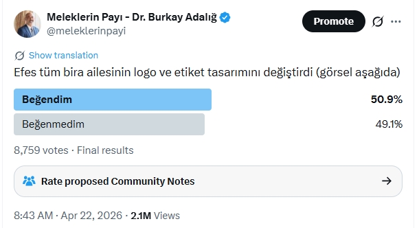 Bana protein tozu, supleman, mentollü şampuan, geçen sene kurulmuş kraft bira firması hissi veren yazıtipi/renk seçiminin ve yeni tasarım çizgisinin çok cesurca bir değişiklik olduğunu düşünüyorum. Markanın 1969’dan bu yana korunan geleneksel marka mirasını zedeler mi zaman içinde göreceğiz. Ancak hedef kitlenin biz boomerlar değil, gençler ve kategoriye yeni giriş yapan tüketiciler olduğu düşünüldüğünde bu görsel dil pazarda olumlu bir karşılık bulacaktır. Efes’in global rakipleri Heineken, Stella Artois, Carlsberg, Tuborg, Amstel, Budweiser gibi global markalar hala serifli yazıtipleriyle ve “old school” sembolleriyle marka miraslarını sürdürürken aralarında bu kadar modern bir yüzle durmak nasıl bir his verecek bakalım. Hayatımda neredeyse hiç kutu bira içmediğim ve barlarda da genellikle fıçı bira siparişi verdiğim için tasarımdan çok bira kalitesinin şu anda benim için daha ön planda olduğunu ekleyeyim.