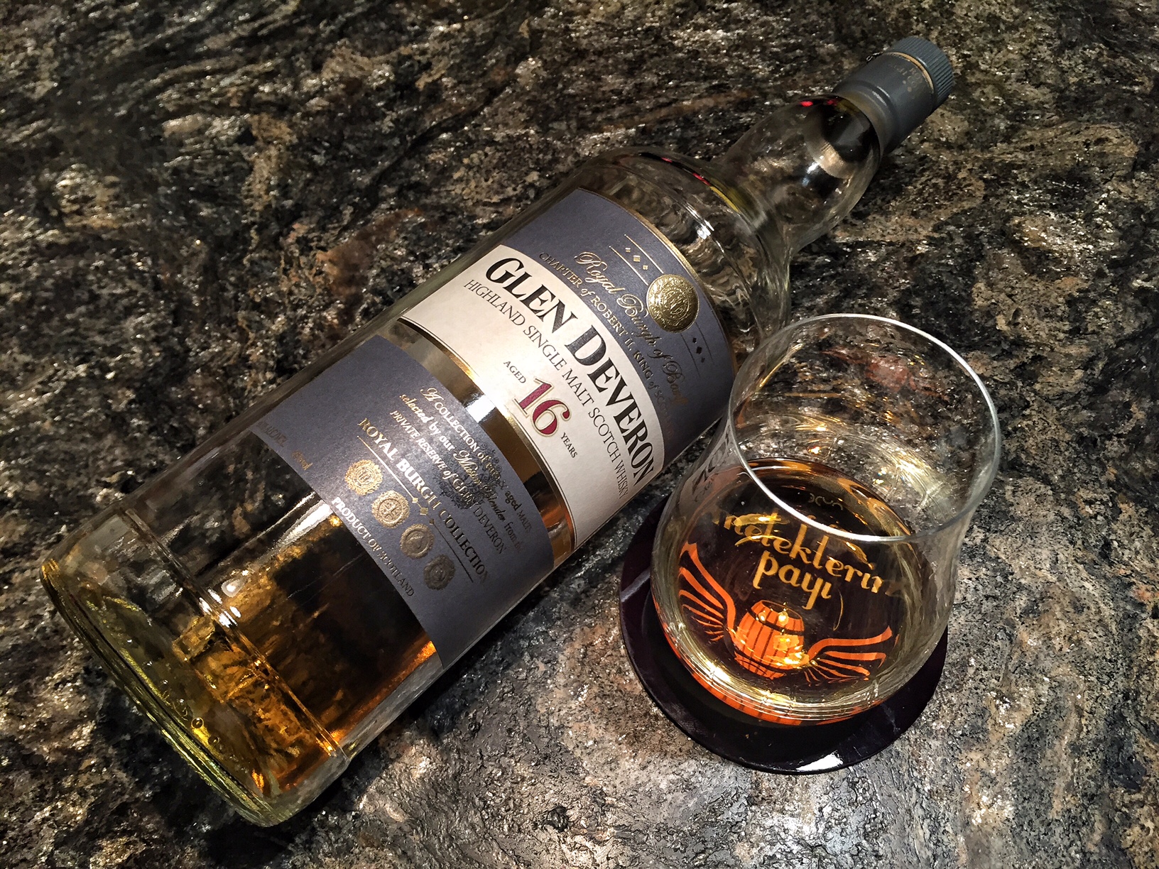 Haritada ve viski kitaplarınızda Glen Deveron diye bir damıtımevi sakın aramayın zira bulamayacaksınız. Glen Deveron 16 Highlands‘in Aberdeenshire bölgesindeki Banff şehrinde yer alan, İskoçya’nın en doğusundaki damıtımevi olan Macduff damıtımevinde üretilen bir single malt. Macduff adını da duymamış olabilirsiniz ancak Macduff, ülkemizde pek bilinmese de dünyanın en fazla satan altıncı İskoç harmanı olan William Lawson’s a viski üreten damıtımevi. Aynı damıtımevi Dewar’s White Label için de viski üretiyor. Macduff’ta üretilen single maltlar 2013 yılında Glen Deveron 16, Glen Deveron 20 ve Glen Deveron 30 dan oluşan The Royal Burgh Collection adı altında piyasaya sunuldu ve sadece duty free’lerde satılıyor. 2015 yılında The Deveron adıyla yeni bir seri üretildi ve 10, 12 ve 18 yıllık maltlardan oluşuyor. 10 yıllık ekspresyon sadece Fransa pazarı için üretiliyor.