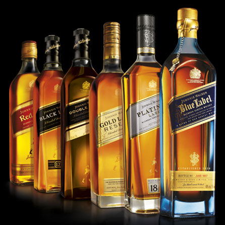 Johnnie Walker Ailesi (Green uzun süredir bulunmadığı için bu görselde yok; ancak 2017’nin sonunda tekrar sunuldu)