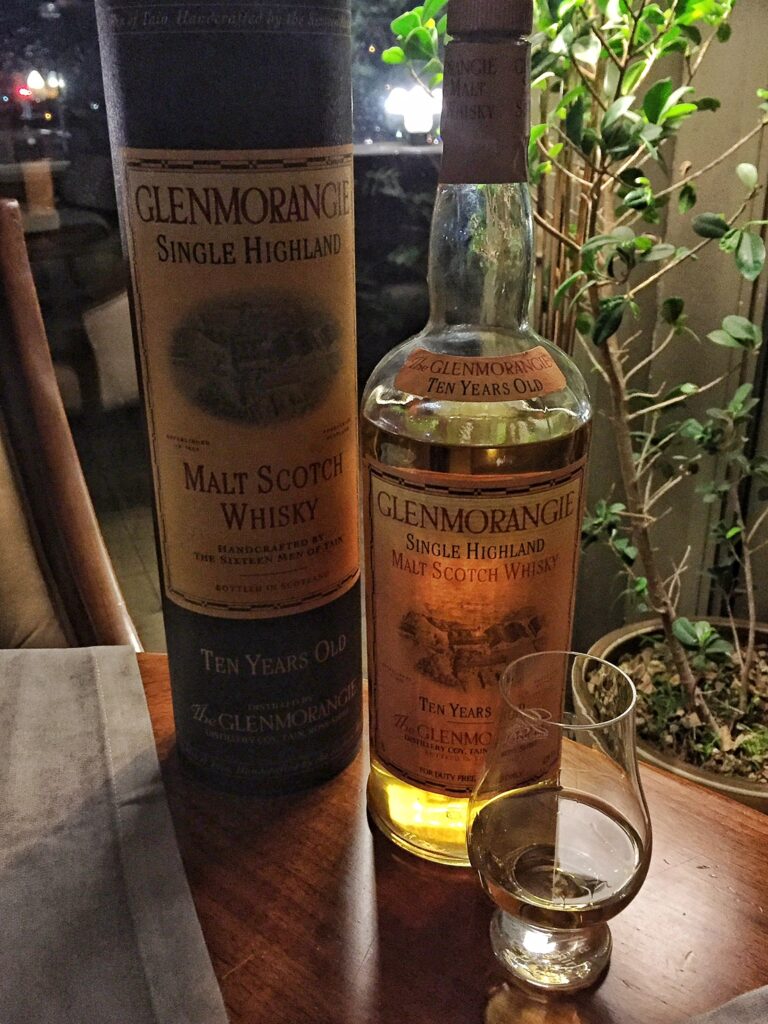 Glenmorangie’nin şu andaki temel ekspresyonu Glenmorangie 10 %40 alkol oranına sahip bir viski ve ülkemizde de bulunabiliyor. Bizim dün gece tatma fırsatı bulduğumuz şişe üyemiz Veysel Bey’in koleksiyonundan; 90’ların sonu olarak tahmin ettiğimiz LVMH öncesi eski etiketli şişe ve %43 ile şişelenmiş (neredeyse bütüm viskilerin %43 olduğu eski güzel günler)