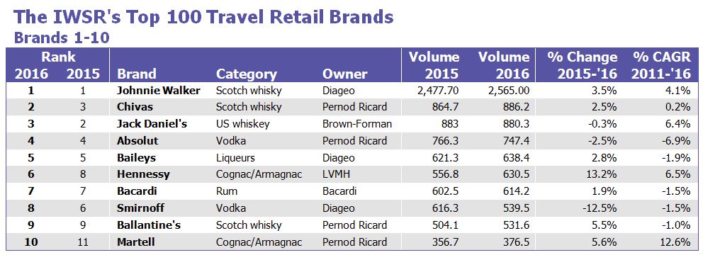 Her sene Eylül ayında bir önceki senenin Duty Free (Travel Retail) satış rakamlarına göre oluşturulan IWSR Duty Free Top 100 Raporu açıklandı