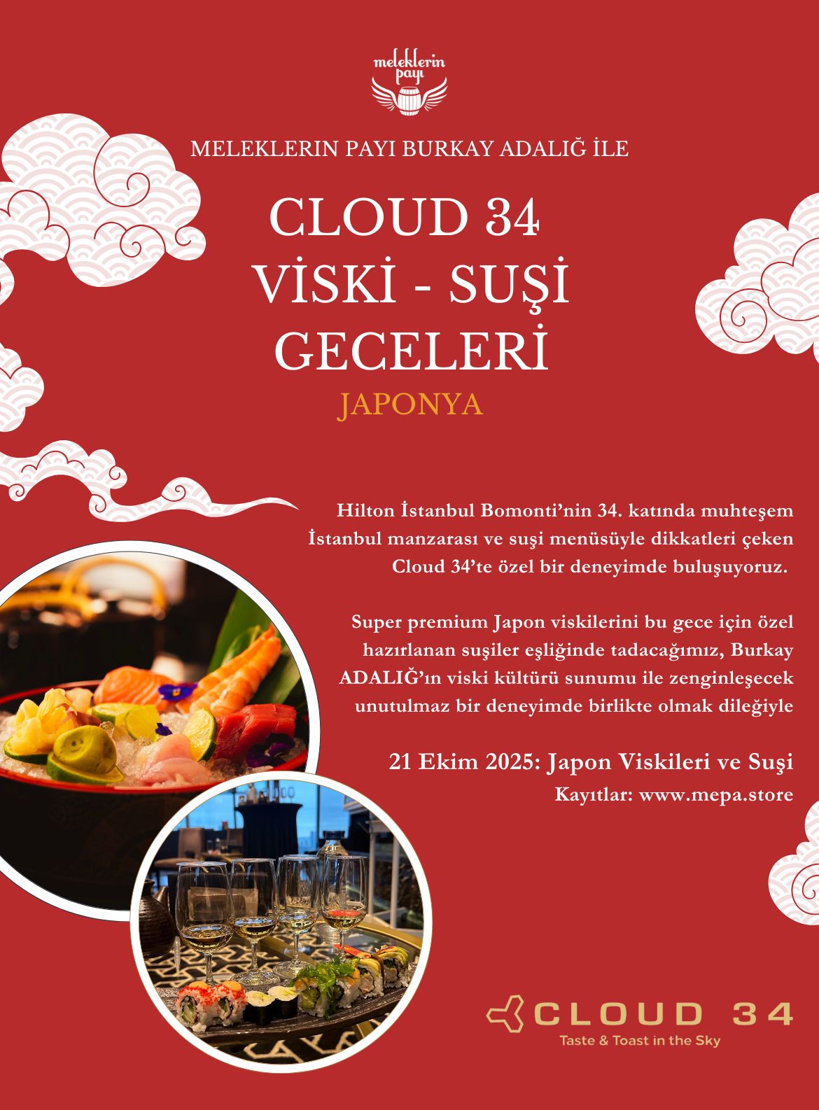 Serinin ilk etkinliği 21 Ekim’de Japon Viskileri temasıyla gerçekleşecek. Yamazaki Single Malt, Yoichi Single Malt, Nikka Tailored, Hibiki gibi ödüllü Japon viskilerini Cloud 34’ün bu viskiler için özel seçilmiş suşi menüsüyle eşleştireceğimiz ve Burkay Adalığ’ın Japon viskileri sunumu ve Japonya damıtımevleri seyahatinden anekdotlarla renklenecek etkinliğimizde görüşmek üzere.