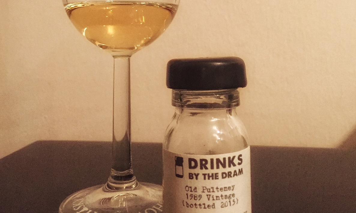 Şişe ödülü aldığı anda bulunmaz olduğu için malesef alamadım ve Drinks by The Dram setindeki 3 ml lik şişeyle tadım yapıyorum. Old Pulteney 1989 Vintage 2015 yılında %46 alkol oranıyla şişelenmiş.