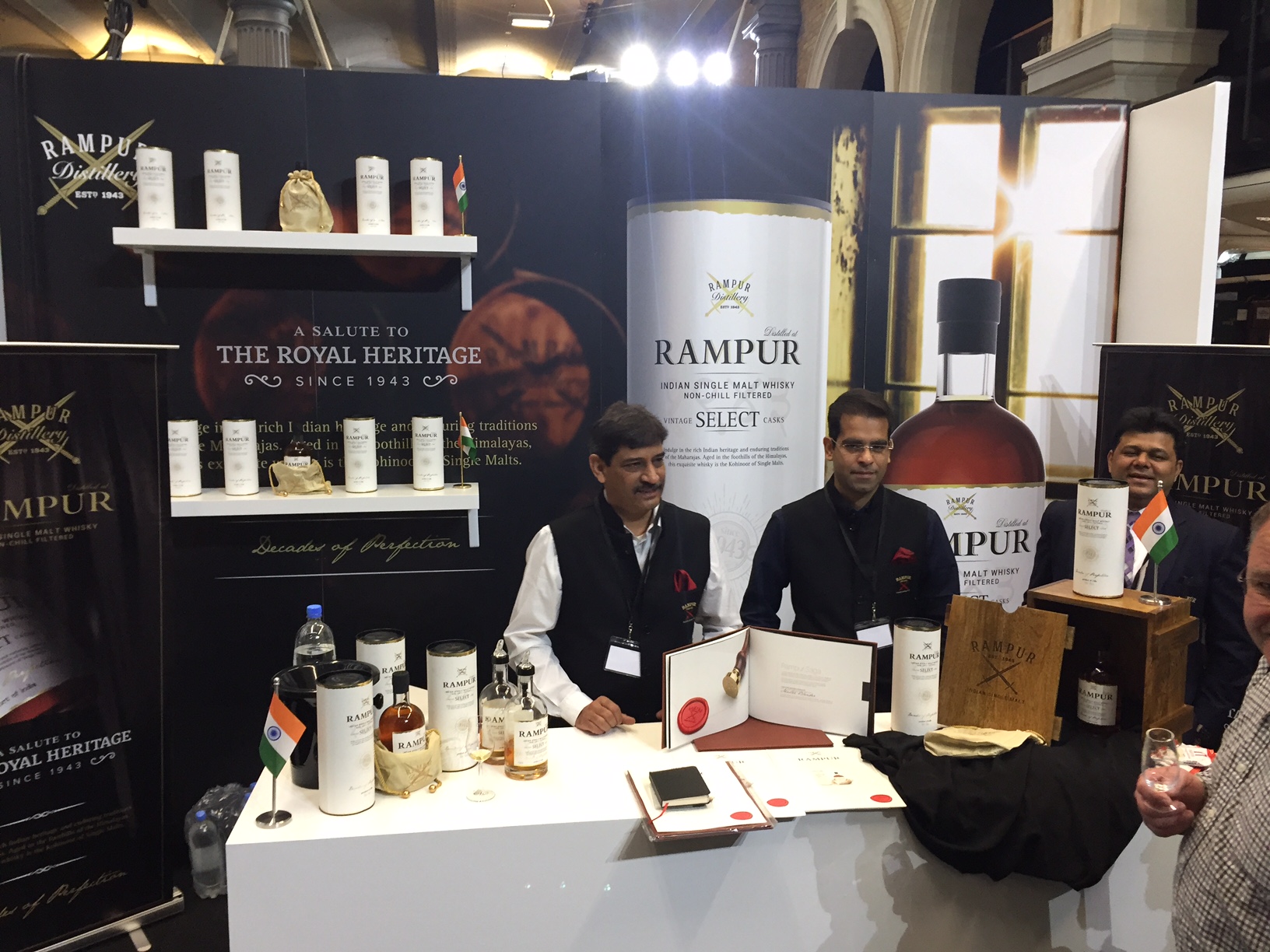 Hindistan yüzlerce farklı viski üretilen (viski tanımına ne kadar uydukları tartışılsa da) dünyanın en büyük viski ülkelerinden biri. Rampur Select Amrut ve Paul John markalarını takiben piyasada görmeye başladığımız 3. tek malt Hint viskisi. İlk defa tek malt viski üretip yabancı pazarlara açıldıkları için adını yeni duyduğumuz Radico Khaitan damıtımevi aslında 1943 ten bu yana üretimde ve senede 100 milyon litreyi bulan miktarlarda viski, rom, brendi ve votka üretiyor. 2016 Ekim ayında Whisky Show London’da İngiltere lansmanı yapılan Rampur Select %43 ABV ile şişelenmiş ve The Balvenie’leri hatırlatan yuvarlak bir kutuda, şık bir ipek kesenin içinde sunuluyor. Standda Uluslararası Pazarlar Başkanı Sanjeev Banga ile sohbet edip tadım yapma fırsatı bulmuştum.