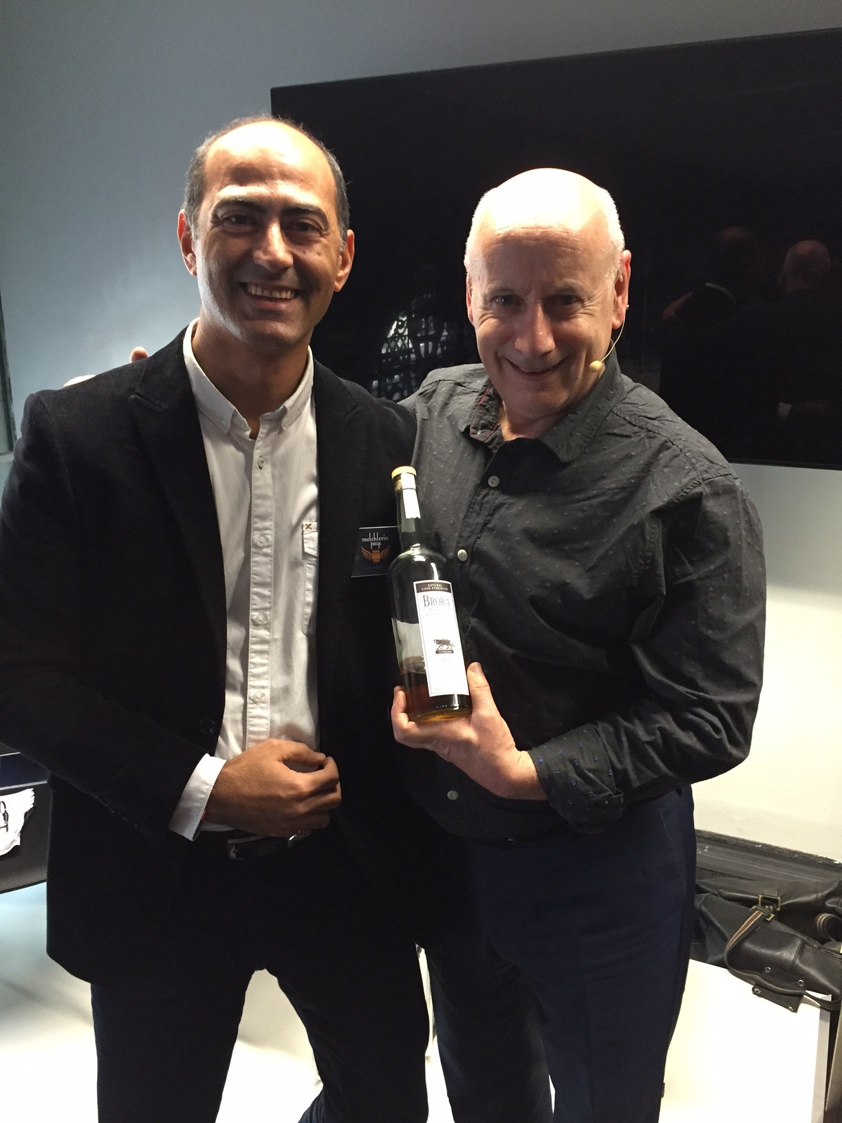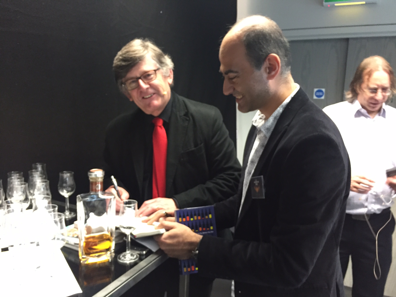 Bu oturumun en önemli kazanımı yeni üretilmiş 3 viskinin tadım karakteristiklerini karşılaştırma fırsatı vermesiydi. Bildiğiniz gibi viskilere tadını veren en önemli faktörlerden biri kullanılan fıçı…Henüz fıçıya doldurulmamış, yüksek alkollü bir sıvıyı (henüz viski diyemiyoruz) koklamak ve tatmak çok özel bir deneyimdi. Ian Buxton ve Prof Paul Hughes’a Meleklerin Payı’nı göstermek, başucu kitabım olan kitaplarını imzalatmak ve Türkiye’deki viski kültürü ile ilgili sohbet etmek de çok keyifliydi elbette. Maltın Günü viski kulübümüzle de çok ilgilenen Ian ve Paul’le fotoğraf çektirerek bu tadımı sonlandırdık.
